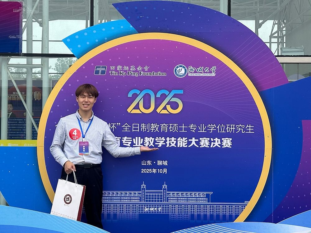 10月25日,2025年全国“田家炳杯”全日制教育硕士专业学位研究生小学教育专业教学技能大赛决赛在山东省聊城大学举行。经激烈角逐,汕头大学法学院高等教育研究所2024级小学教育专业研究生谭子升同学作为学校唯一参赛代表,在小学英语赛道脱颖而出,荣获全国“田家炳杯”总决赛二等奖;王世赟老师荣膺优秀指导教师奖,成功实现学校教育硕士在全国教学技能大赛舞台上零的突破。