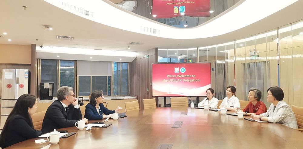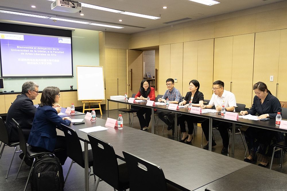 10月30日至11月1日,乌拉圭共和国大学(Universidad de la República, Uruguay)副校长兼牙医学院院长玛丽安娜·塞奥安、化学学院院长阿尔瓦罗·蒙布鲁、艺术学院院长费尔南多·米兰达、兽医学院院长何塞·帕萨里尼、工程学院院长巴勃罗·埃扎蒂、医学院院长阿图罗·布里瓦、国际关系处处长冈萨洛·维奇等来访汕头大学,与学校进一步拓展交流领域,深化合作关系。汕头大学校长郝志峰在学术交流楼欢迎代表团。这是乌拉圭共和国大学在短短两年内的第三次高级别代表团来访,彰显了双方合作的高效与深度。