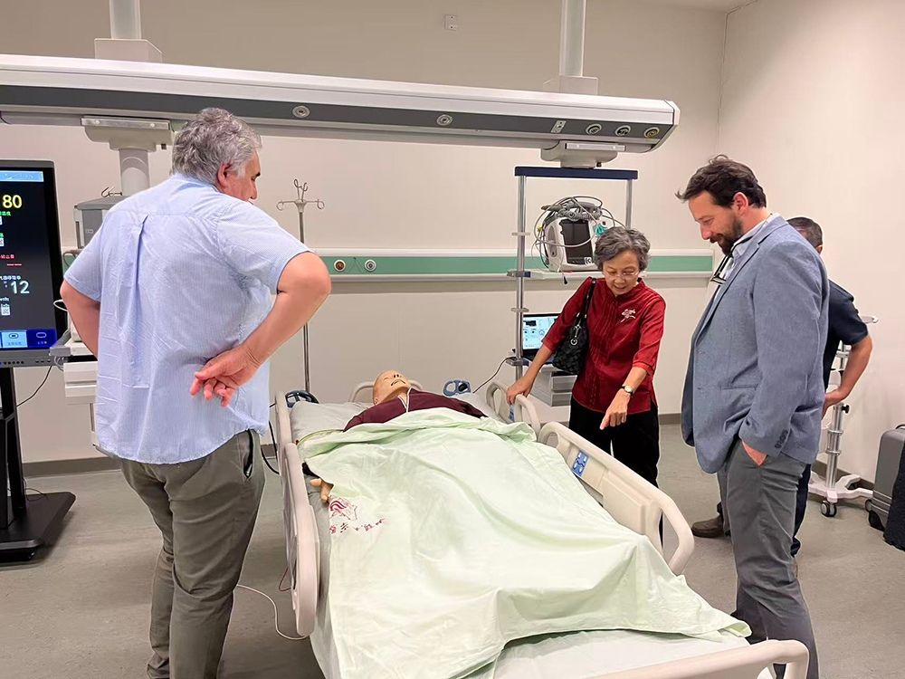 阿图罗·布里瓦与何塞·帕萨里尼在罗敏洁的陪同下先后参观了医学院大楼及汕头大学医学院附属肿瘤医院。乌方专家详细了解了学校医学院先进的模拟医院、实验室以及肿瘤医院在临床治疗与前沿研究方面取得的成果,对其完善的硬件设施、高水平的科研能力及“医者仁心”的培养理念给予了高度认同。