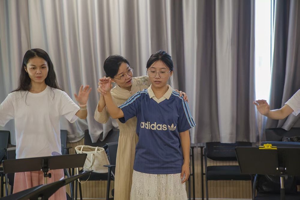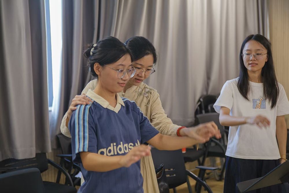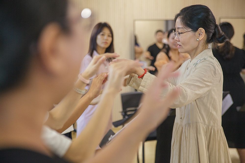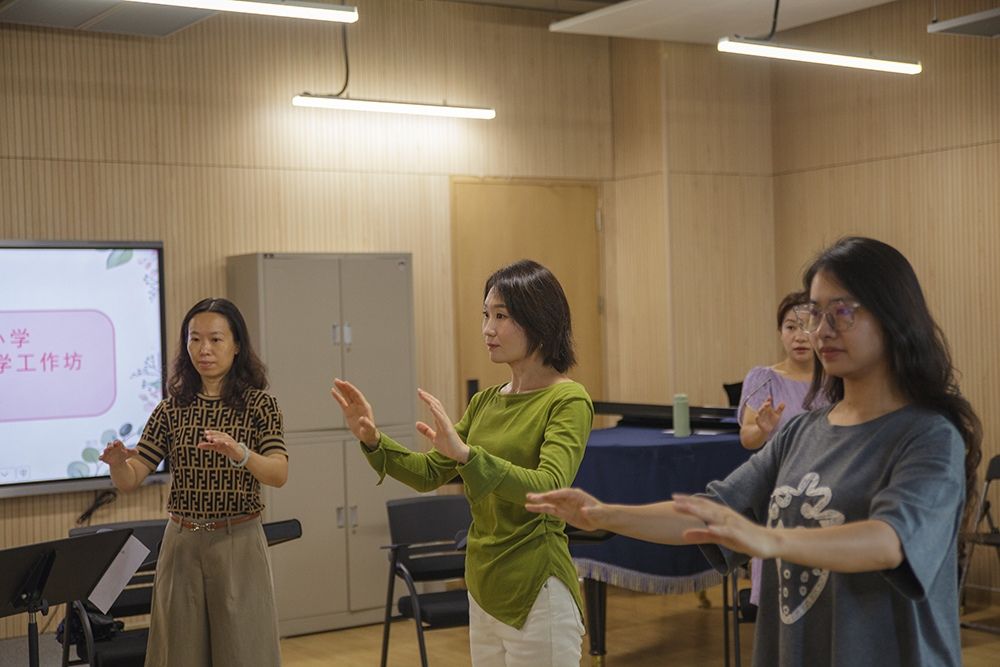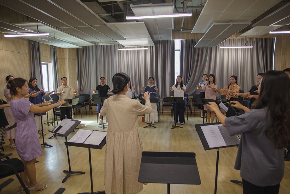 “排练要带着预判意识。”廖文兰结合合唱作品,引导教师分组分析:“要提前想到学生可能出现的问题,用观察解决问题,用步骤提升效率。”这种兼具理论高度与实践温度的指导,让老师们茅塞顿开。