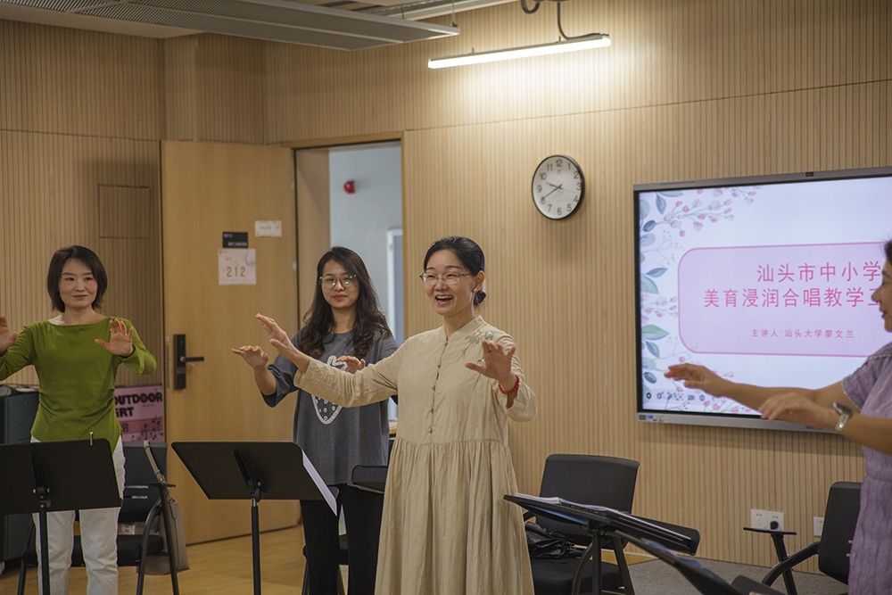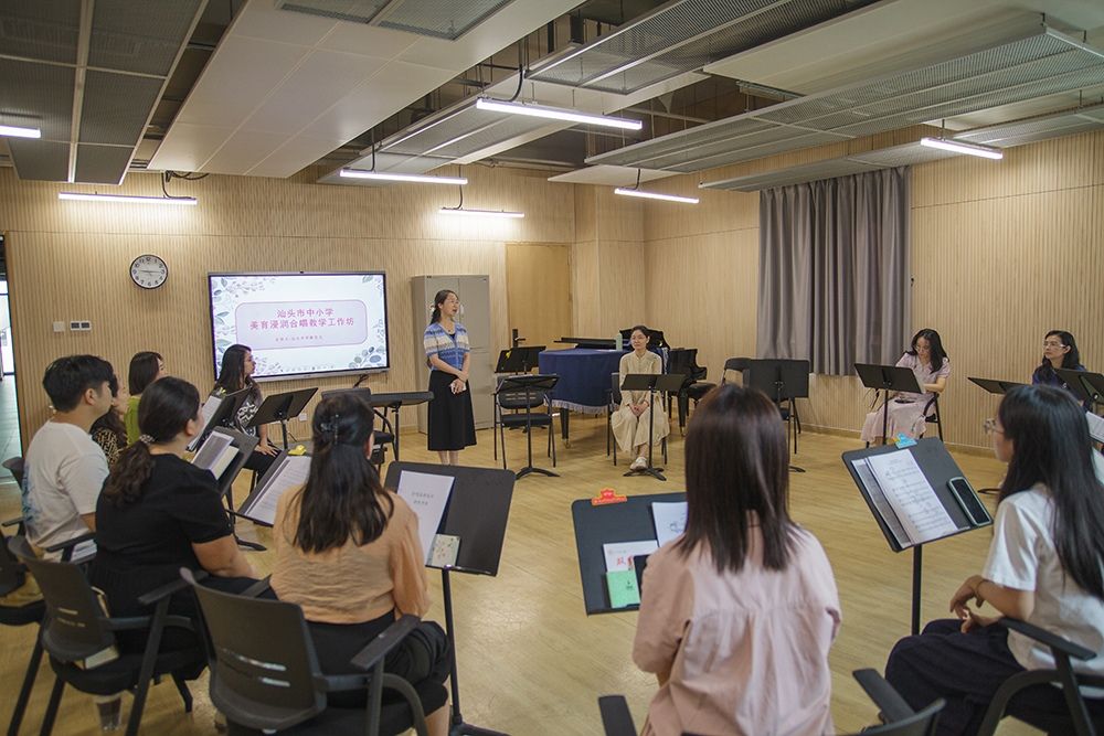 来自全市各中小学的16名音乐教师齐聚一堂,在汕头大学艺术教育中心廖文兰副教授的带领下,开启了一场全天候、聚焦专业成长与美育传承的深度学习之旅。