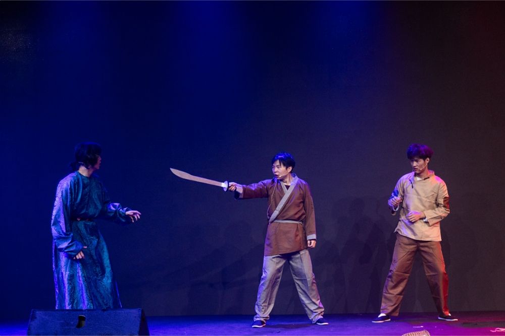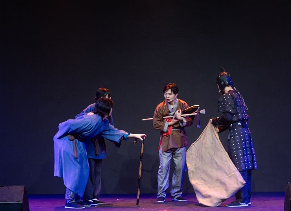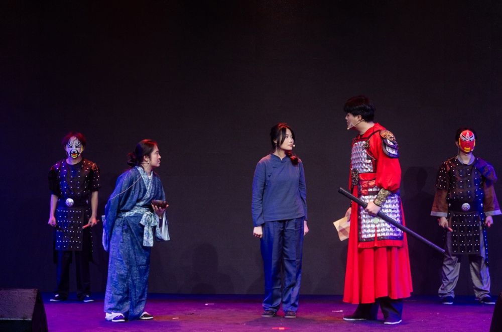 作为第四届文学院戏剧节的中文大戏,由文学院师生原创的作品《英歌魂》首次精彩亮相。该剧以虚实融合的艺术手法锚定潮汕文化根脉,讲述南宋末年抗元将领岳镇渊在禁武铁令之下,融兵法于酬神之舞、化短棍为御敌之器,最终孕育出英歌舞的故事。