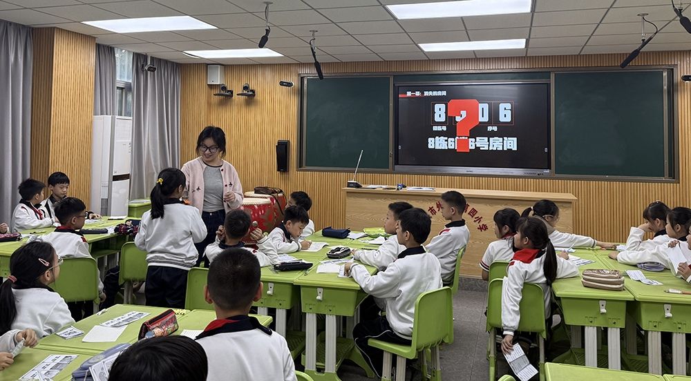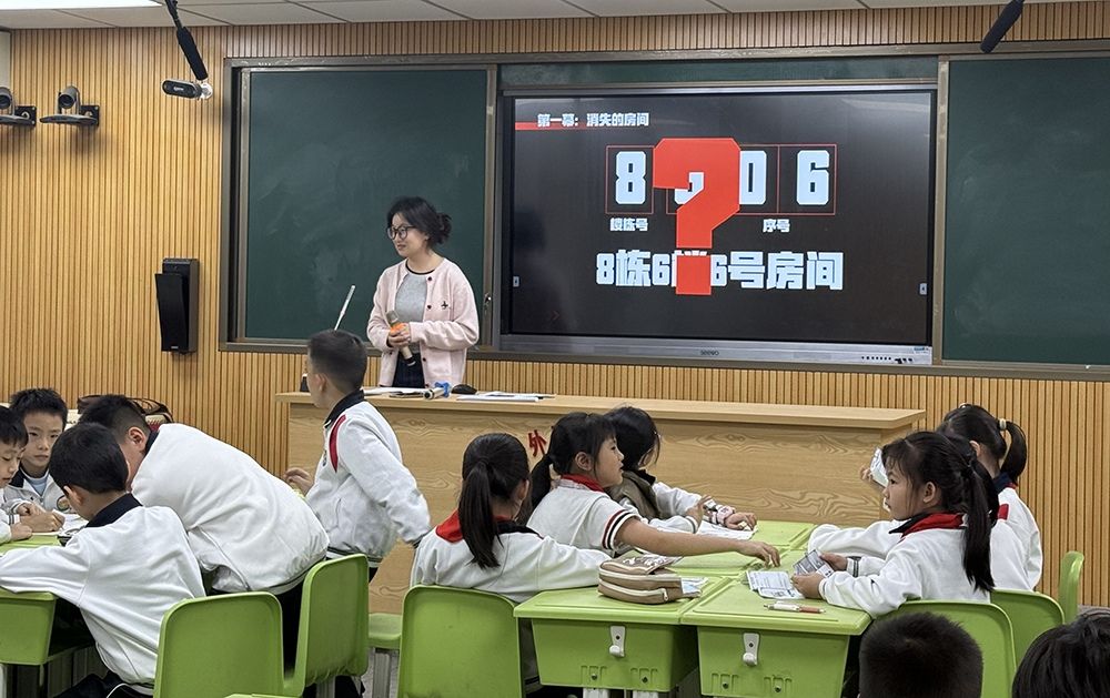 第一幕是“消失的房间”。一张酒店房卡显示“8606”,看似指向8栋6楼6号房,可酒店只有一栋楼!同学们先对照学校教室编码规则(楼栋号+楼层+序号)推理,再请“酒店经理”角色揭秘:首位“8”只是吉利数字,后三位才是真实位置。编码规则的重要性瞬间显现——不知规则,就会误入歧途!