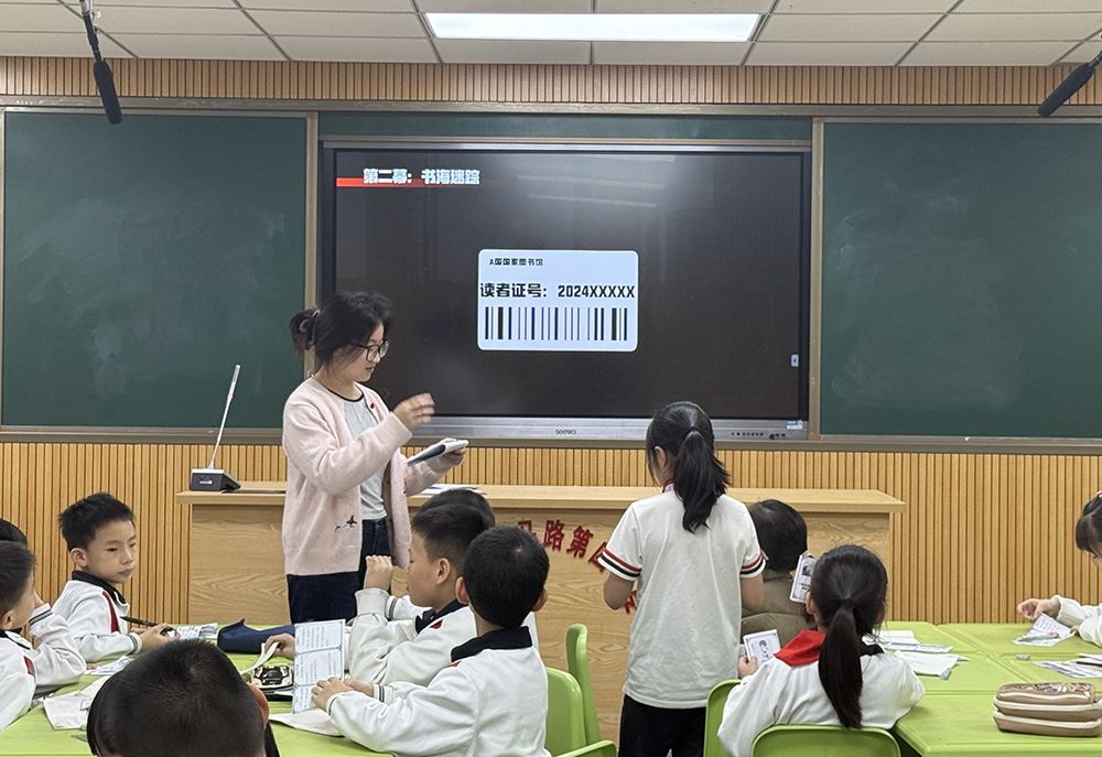 第二幕是“书海迷踪”。间谍遗留的借书证条码成为关键。同学们使用扫码枪扫描,获取借阅信息,发现间谍借过《三国演义》(书架号I01203019)。在“图书管理员”角色引导11111下,解析书架号规则(分类号I文学类+架次012+层数03+序号019),精准定位书籍。过程中,大家深刻体会到编码的“唯一性”和“数位统一性”——即使0看似无意义,也确保解读不混乱。