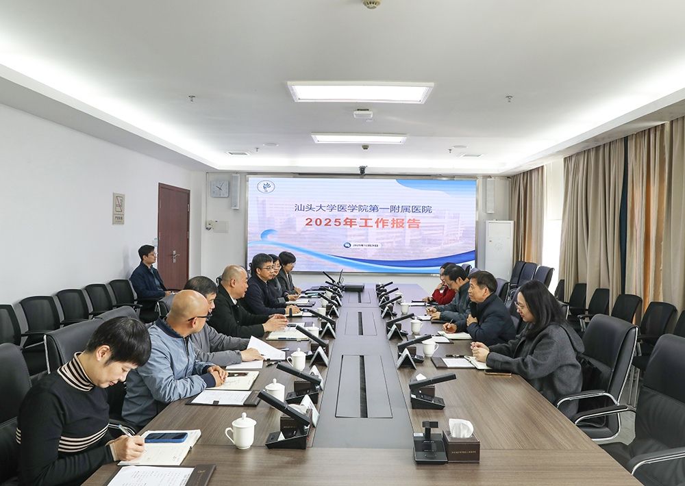 岁末已至,为深入了解附属医院高质量发展和全面从严治党工作推进情况,12月26日上午,汕头大学执行校长王泉,汕头大学党委常委、纪委书记冯兴雷莅临汕头大学医学院第一附属医院(以下简称附一院),开展调研座谈,听取医院年度工作情况,汕头大学医学院纪委书记黄谷子陪同调研。医院党政领导班子及相关职能科室负责人参加会议。调研座谈会由附一院党委书记林枫主持。