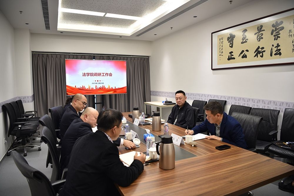 唐锐对法学院良好的发展势头和工作成效表示充分肯定。他强调,要进一步凝练学科建设方向,聚焦区域国别研究找准学科大交叉融合的突破口,联动相关学科形成研究合力,打造具有辨识度的学科特色品牌;要进一步革新科学研究理念,培育结构合理、协同高效的科研创新梯队,以问题为导向精准破解国家和区域发展中的前沿难题;要进一步加强人才培养创新,探索AI时代复合型人才的培养新模式,优化课程体系与实践教学环节,全面提升学生核心竞争力;要进一步扩展社会服务外延,通过法律咨询、政策研究、人才输送等多元形式,助力地方治理体系和治理能力现代化建设,为地方发展提供智力支持和人才保障以彰显高校的社会担当。