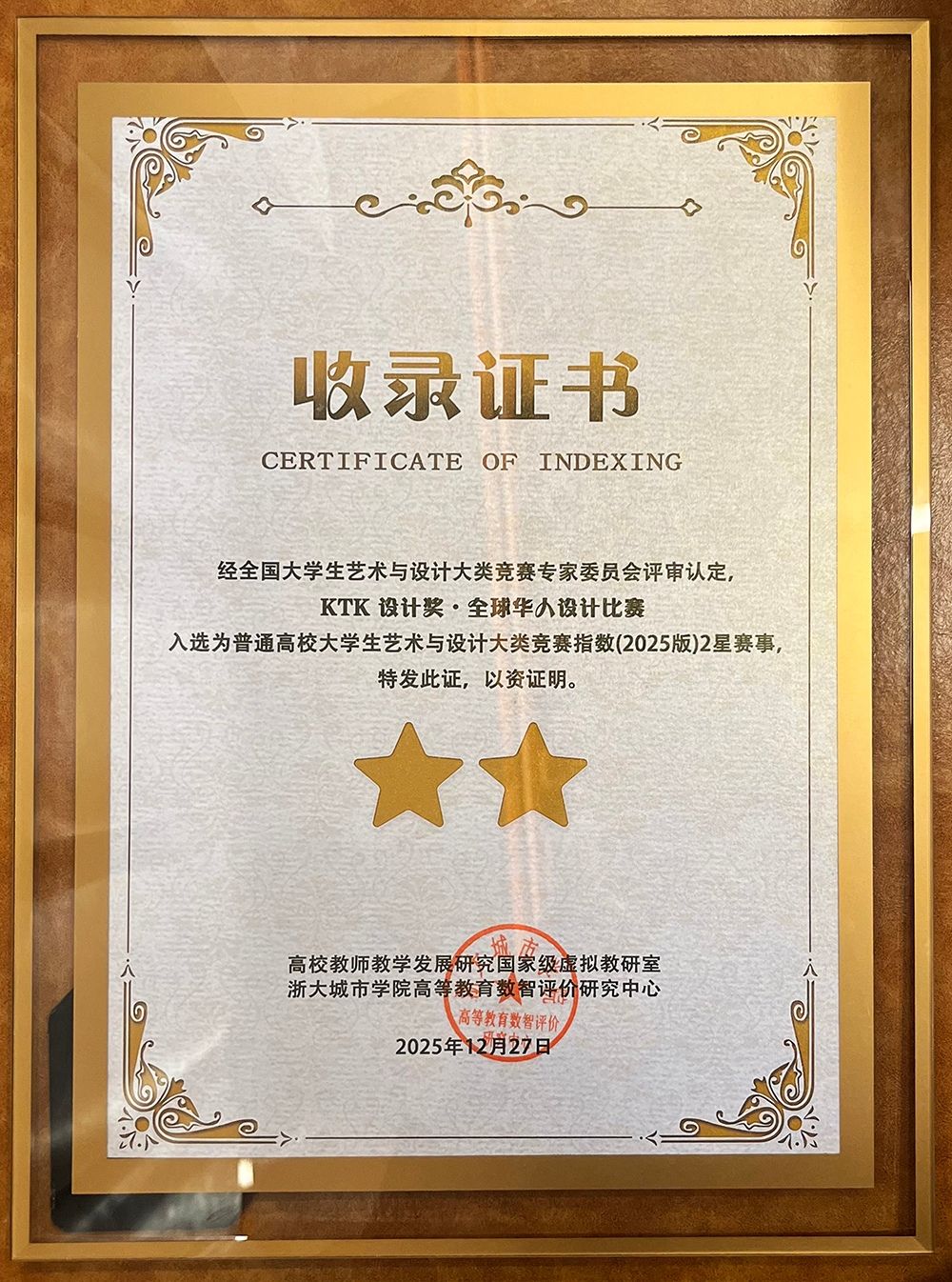 KTK设计奖由长江艺术与设计学院前院长靳埭强教授于1999年创办,历经二十多年的跨世纪发展,已成长为全球华人设计领域最具专业性与影响力的标杆赛事之一,为设计青年们提供了交流学习、施展才华的广阔平台,更见证了他们成长为中国设计领域的中坚力量。此次入选,既是对KTK设计奖的专业影响力与学术价值的综合肯定,也标志着学校在赛事承办上达到了新的高度。