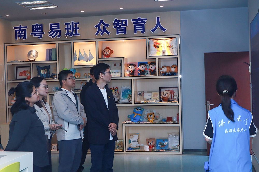 在佛山大学学生工作部副部长、广东高校易班发展中心副主任杨恺老师的带领下,汕大团队先后参观了该校的省级“双创”工作室、易班学生工作站、易班技术中心以及易班VR体验室。在参观过程中,杨恺及团队详细介绍了佛山大学易班团队建设的组织架构、成员职责分工,以及在校园文化、文创设计和技术开发等方面的具体实践经验。特别是在“双创”平台建设上,佛山大学充分利用易班平台推动数字化创新,将思政教育、创新创业和学生实践活动有机融合,形成了校园网络思政建设的新亮点和可复制经验。