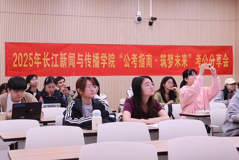 2025年12月22日下午,长江新闻与传播学院“公考指南·筑梦未来”考公经验分享会在东海岸校区举行。活动邀请税务系统公职人员邵润嘉、周斐颖等两位校友返校,为有考公意向的学子分享备考与选岗经验。学院团委副书记朱慧斌出席分享会。