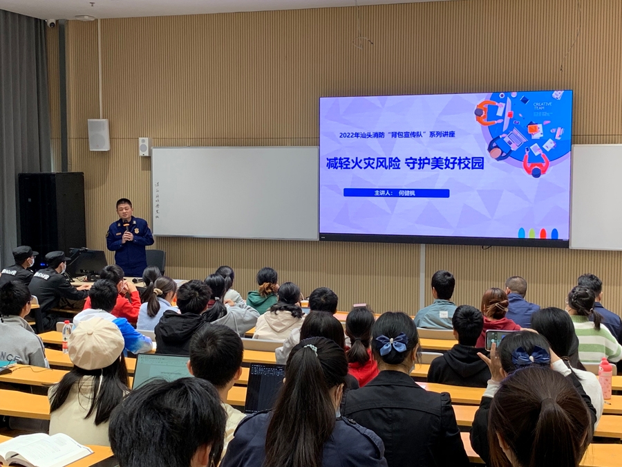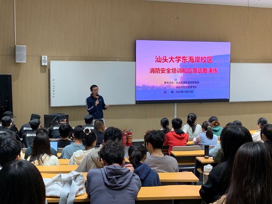 12月10日,东海岸校区管委会邀请汕头市消防救援支队在校区教学楼举办消防安全培训活动。管委会安全保卫办公室、学生消防志愿者、物业保安、宿管、工程维修人员共120多人参加培训活动。活动分为理论知识培训和实践演练两个环节,由汕头市消防救援支队新闻宣传科一级助理员、全媒体工作中心何健枫主任主讲。