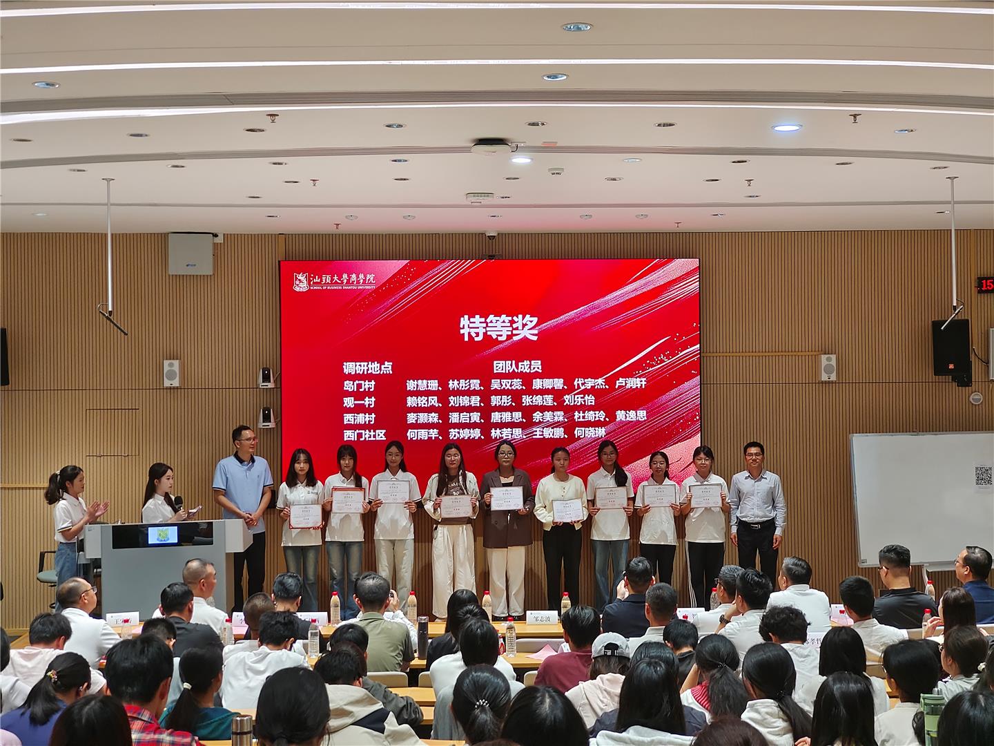 现场,嘉宾代表总结调研成效、肯定调研意义、明确调研成果转化路径及乡村振兴工作规划,并为获奖学生团队颁奖。此次调研活动共吸引60余支队伍近300名学生参与,历经半年实地走访,27支队伍、130余名学生脱颖而出,深入澄海区27个典型乡村,走访观察,完成27份总字数超百万字的调研报告。报告涵盖乡村地理、历史、文化、经济、治理等多个维度,系统梳理“百千万工程”的基层推进情况,分析各村优劣势与机遇挑战,并提出针对性的发展对策。