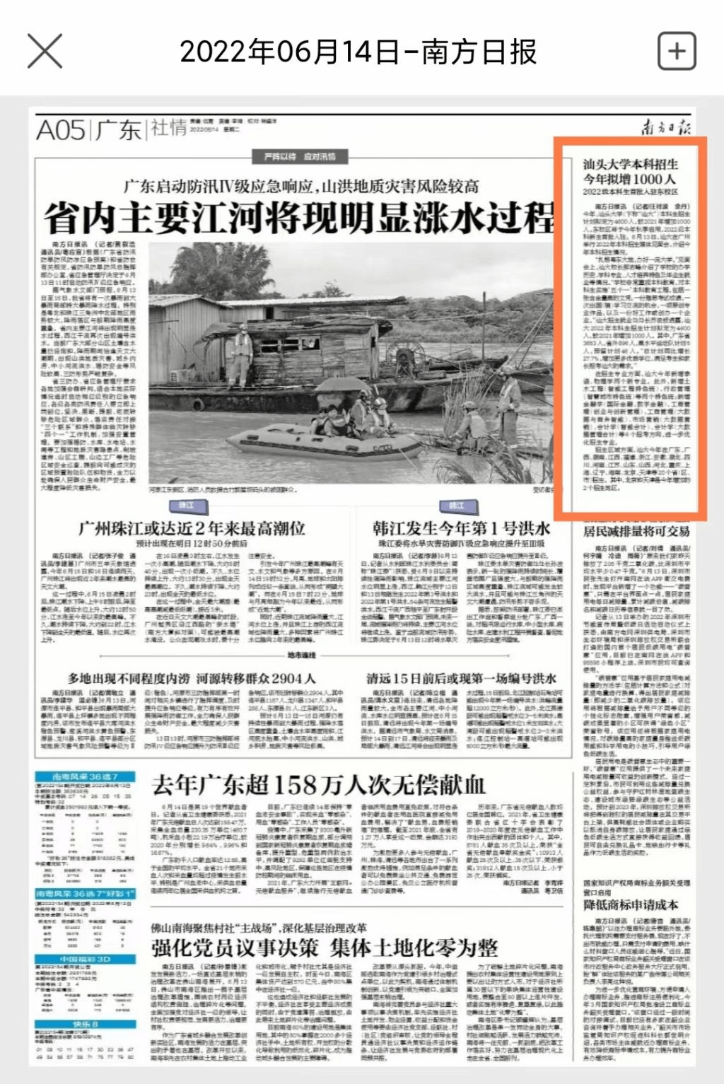 南方日报讯 (记者/汪祥波 余丹)今年,汕头大学(下称“汕大”)本科生招生计划拟定为4600人,较2021年增加1000人,东校区将于今年秋季启用,2022级本科新生首批入驻。6月13日,汕大在广州举行2022年本科招生媒体见面会,介绍今年本科招生情况。