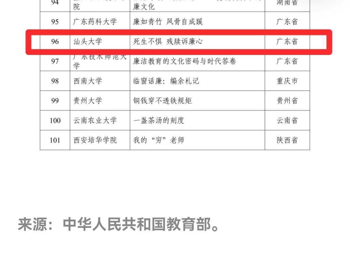 近日,教育部公布第十届高校廉洁教育系列活动结果公示,汕头大学推荐的征文作品《死生不惧,残牍诉廉心》成功入选“话廉修德”校园征文遴选名单。