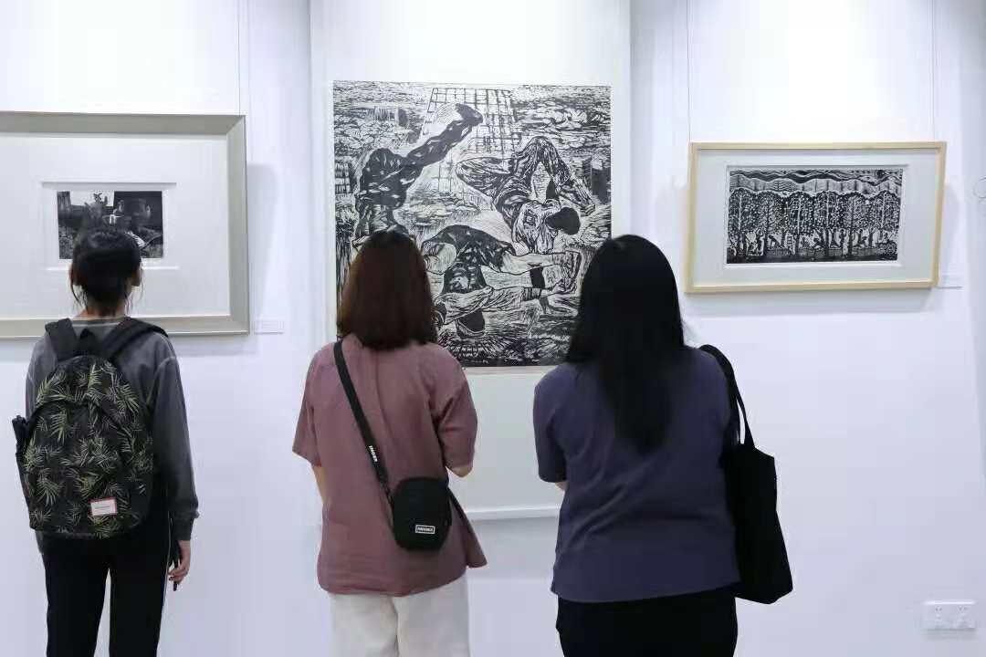 在短短的时间内,同学们已经被版画展深深地吸引住了,开始尝试着自己去欣赏画作,甚至有些意犹未尽。