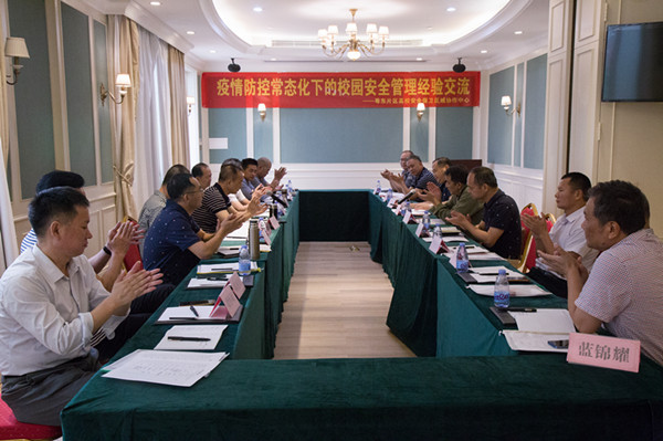 活动动员中,温锐丰处长对开展这次活动的重要意义进行了阐述,并对搞好此次活动和今后粤东片区高校做好疫情防控常态化校园安全管理工作提出了三点意见,一是认清形势,增强做好疫情防控常态化下校园安全管理工作的紧迫感;二是端正态度,畅所欲言,认真学习彼此间经验做法;三是主动作为,努力推进所在单位校园安全管理建设和发展。区域中心外的8所高校保卫处长对所在单位的安全管理工作中经验做法进行了介绍发言,发言内容主题鲜明、内容丰富,具有很强的针对性和指导性,令与会人员深受启发。区域中心各高校安保工作负责人也对各自好的做法进行了发言,对疫情防控常态化下出现的突出问题隐患进行交流研判和集体会诊。此外,还到汕尾职业技术学院进行了实地参观。