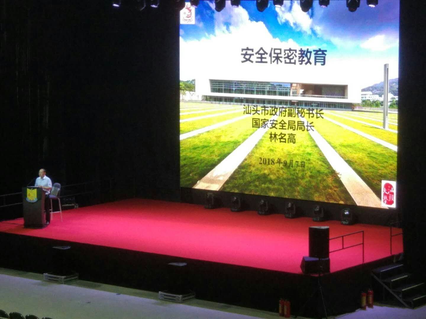 根据我校2018年度新生入学活动安排,9月7日16时30分至17时30分,学校在体育园对全体新生实施国家安全及消防安全教育活动。活动中,首先由汕头市国家安全局领导进行安全保密教育,教导新生在日常生活及学习中,要切实注意加强安全保密工作,遇到危害国家安全的行为要主动报告,坚决制止。金平区消防大队官兵以“人人把好消防关,有备无患保平安”为主题,对全体新生进行了消防安全培训,通过系列的火灾事故教训,让学生们真切感受到火灾带来的严重后果,牢固树立防灾意识。教育授课后,消防官兵还在体育园外现场实地进行消防器材使用讲解,让新生们了解身边的消防器材使用方法。