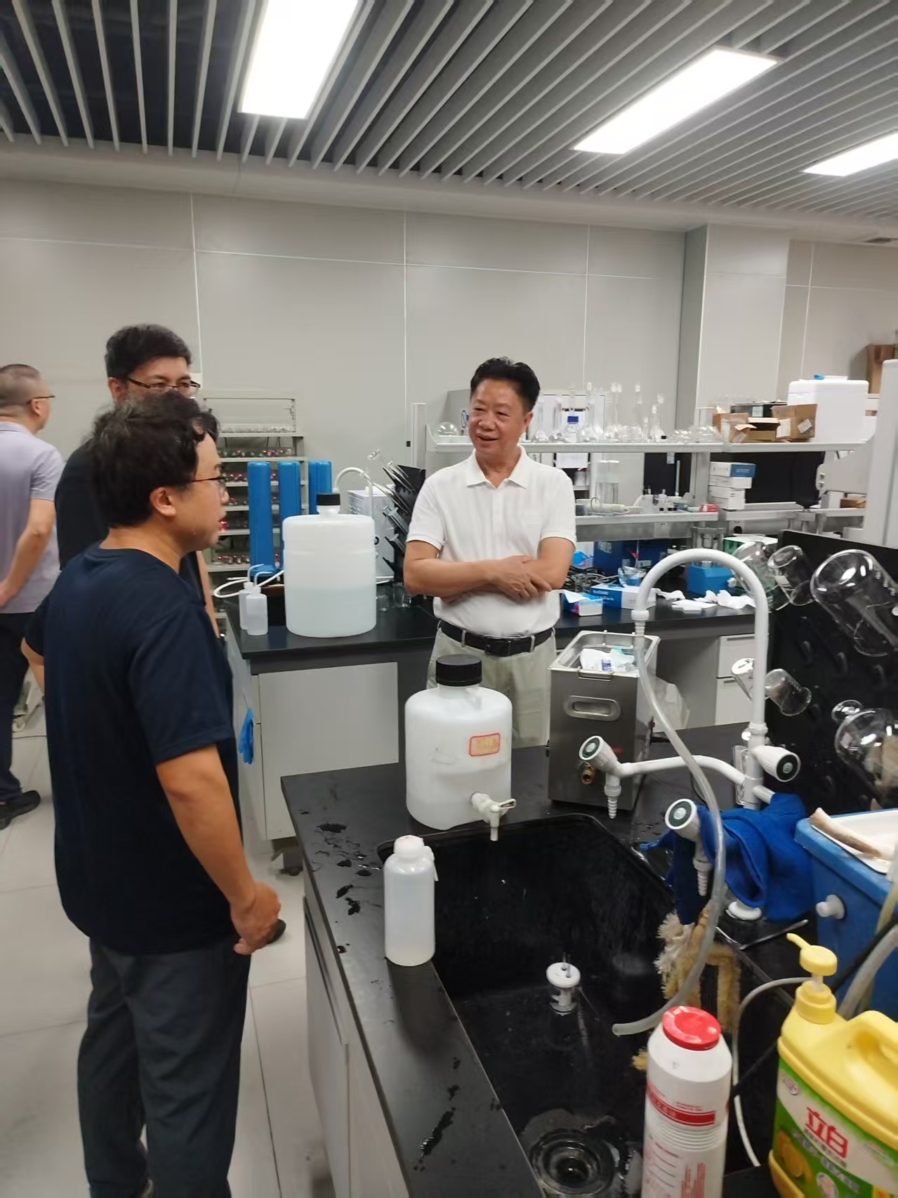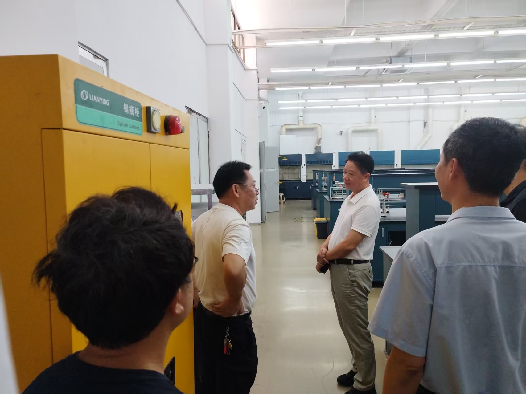 2025年7月8日下午,学校党委副书记周镇松带队到多学科楼、高水平实验楼等地检查实验室安全工作。资源管理处处长林兵峰、化学化工学院党委书记方奕文、保卫处负责人林禄水等陪同检查。