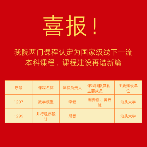 近年来,数学与计算机学院始终将课程建设作为育人核心抓手,全面推动教师深耕课程理念、内容与模式创新,牢牢守住课堂育人主阵地,着力提升教学质量,构建起多层次、全覆盖的一流课程建设格局。截至目前,学院已累计拥有 3 门国家级一流本科课程、5 门省级一流本科课程、9 门校级一流本科课程,课程建设成果丰硕。在课程思政建设领域,学院同样成效显著:6 门本科课程获评广东省课程思政示范课程,1 个团队获评省级课程思政示范团队,实现了专业建设与思政育人的深度融合、双向赋能,为培养德才兼备的高素质人才筑牢思想根基。