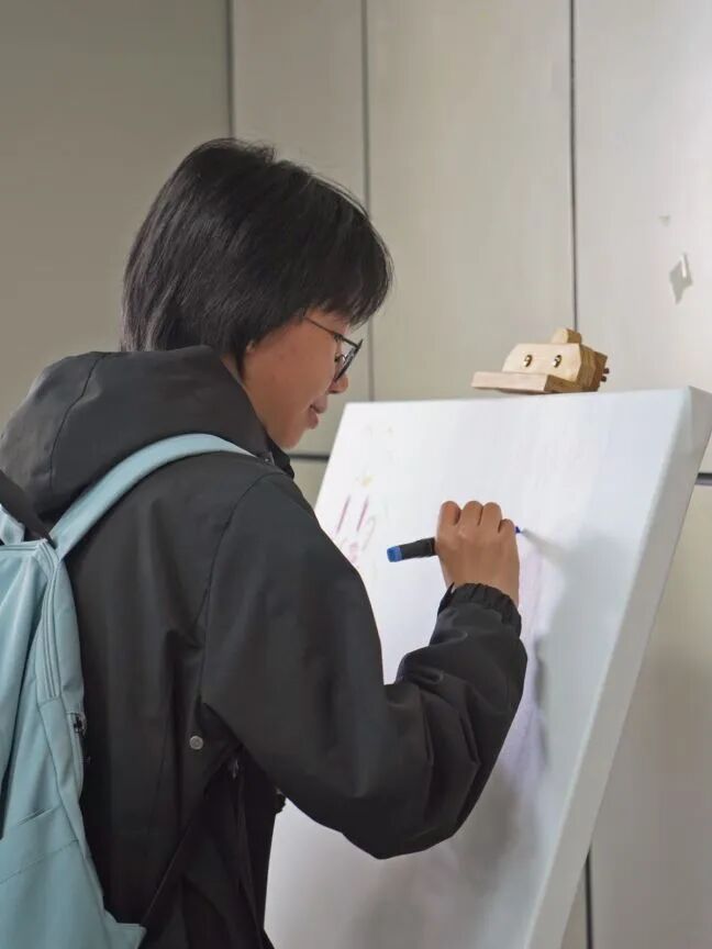 活动现场,正如火如荼地开展着手绘活动,空白的画板前围着一群挥洒笔墨的 ta 们。随着手中画笔的要肆意流转,画板上逐渐出现了一朵朵给人鼓励的小红花,一个个灵动的小头像,每一个图案,每一个符号,每一张笑脸,都代表着大家对女性的祝福与鼓励:遵循自我,成为不一样的色彩。