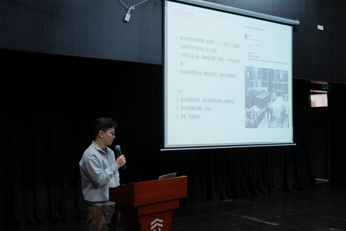 针对科研规划,他建议,读博前应明确科研兴趣,争取硕博连读机会;外派交流宜在完成主要科研任务后进行,并带着明确的合作目标。在时间管理方面,他强调科研工作需踏实积累、勤于总结,是提升科研效率的关键。