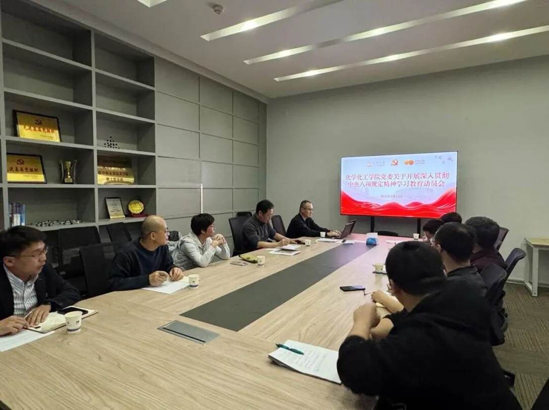 3月24日下午,化学化工学院在多学科一楼会议室召开深入贯彻中央八项规定精神学习教育动员会,对学院层面开展深入贯彻中央八项规定精神学习教育(以下简称学习教育)进行动员部署。学院党委书记方奕文、副书记卢桌彬、各党支部书记参加会议。院长黄晓春、副院长鲁福身列席会议。会议由卢桌彬主持。