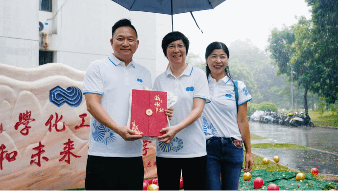 弹指一别二十载,学子深情聚汕大。9月22日,在化学化工学院、资源管理处、基建处、保卫处、校友工作办公室的协助支持下,汕头大学2000级应用化学专业校友带着对母校的深情厚谊,自五湖四海温情归家,开展毕业20周年聚会活动,并以捐赠院名石、栽种凤凰木、合唱大学问等别出心裁的方式,向母校献上一份独特的心意。