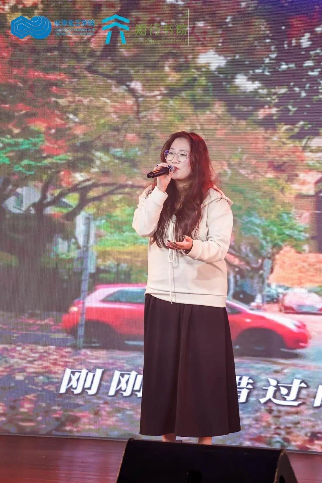 李欣然同学的嗓音清新甜美,一首《想你时风起》如微风拂面,带着青春的淡淡悸动与美好,让整个科报厅都沉浸在浪漫的氛围之中。