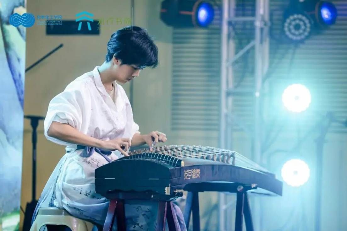 方家琪同学一袭汉服,指尖在琴弦上流转,一曲《青花瓷》潺潺而出。古筝的悠扬清雅与中国风的意境完美融合,为喧嚣的晚会带来一片宁静致远的古典空间。