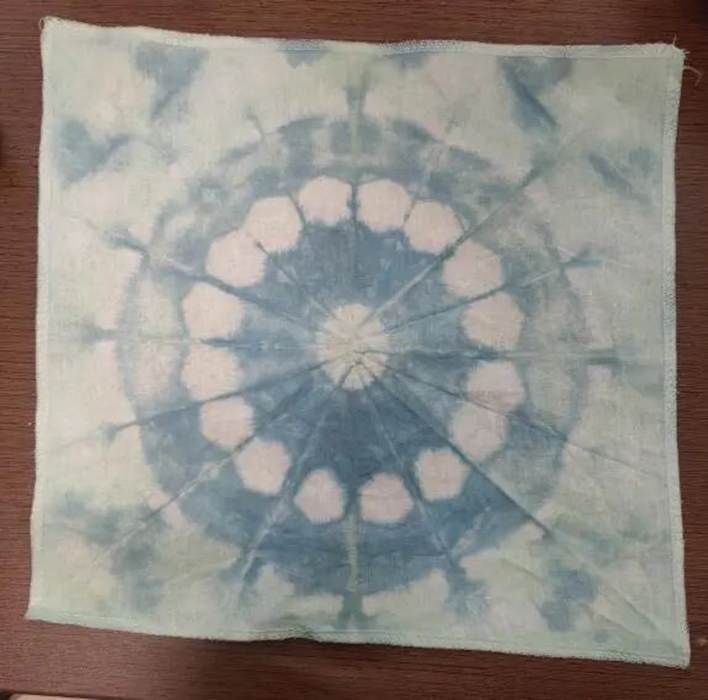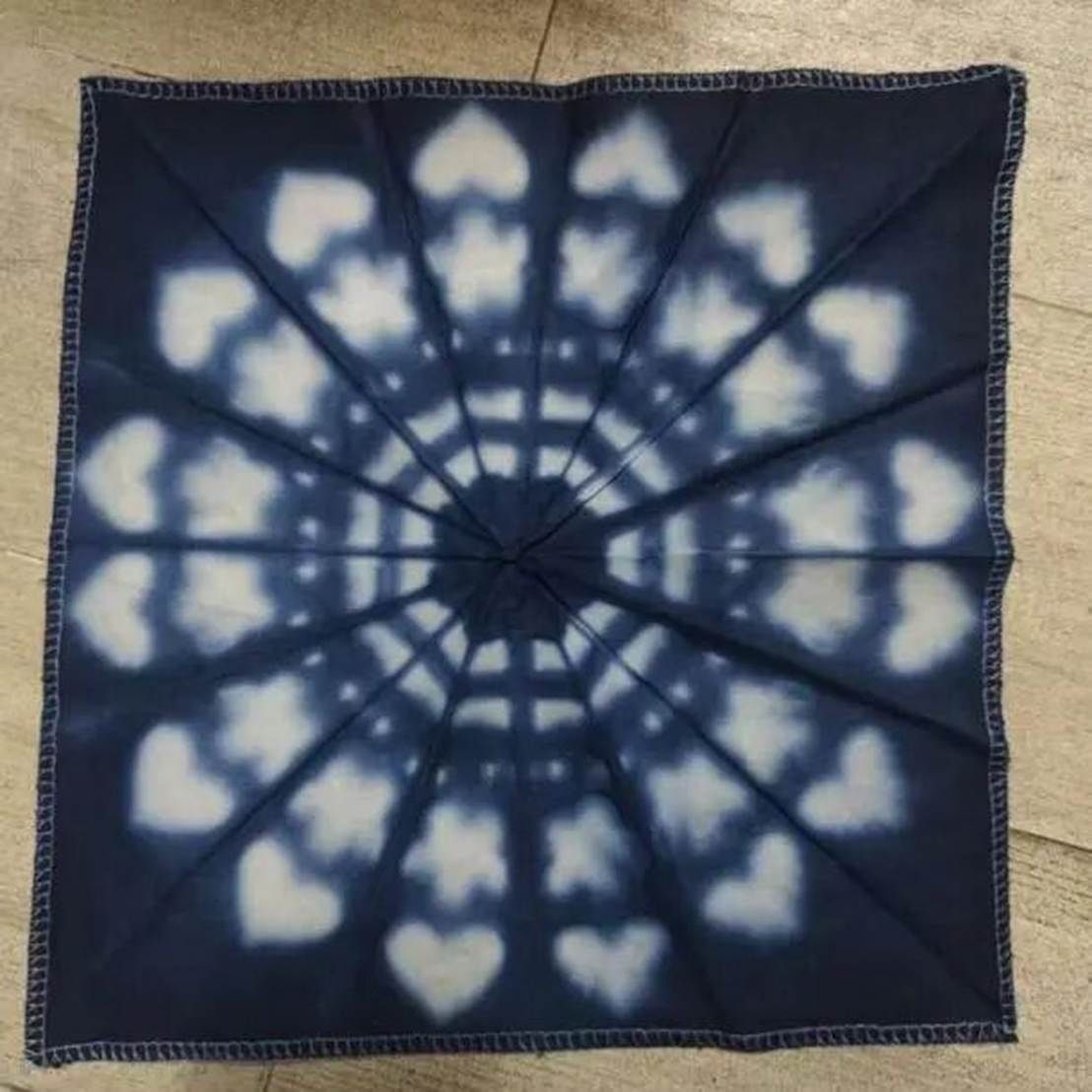 经过氧化与固色,最激动人心的时刻终于到来——拆解绳结,揭晓答案!当初被皮筋紧紧束缚的布料,在展开的瞬间,绽放出了独一无二的惊艳图案。