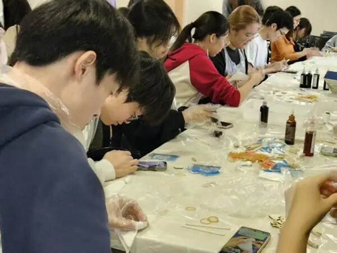 11月23日,化学化工学院与知行书院联合举办“唤醒多巴胺”工作坊第十四期活动——缚结出“化”,“染”绎精彩,已圆满落幕!本次活动共计40名同学热情参与,在这里,大家一同走进扎染的奇妙世界,亲手将洁白的布料缚结、浸染,创造出独一无二的斑斓图案,感受化学与艺术碰撞的无限魅力!接下来就让我们一起回顾那些充满创意与惊喜的瞬间吧!