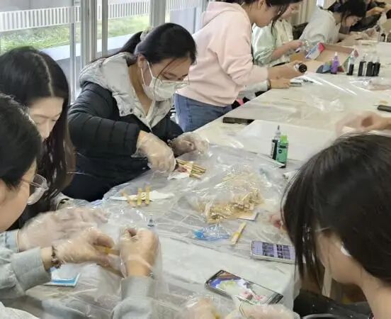 大家依照自己的创意设计,或折叠,或缠绕,用皮筋小心翼翼地固定出各种形状。活动现场,只见同学们全神贯注,时而凝神思考,时而与同伴交流技法,空气中充满了专注与期待的气息。