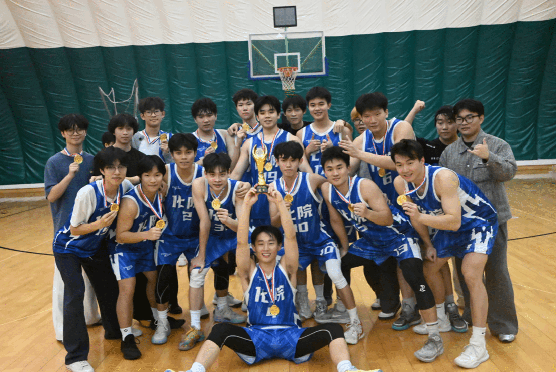 加时赛中,全队士气如虹,攻防一体,最终以 79:76 实现惊天逆转,成功夺冠!瞬间,欢呼声响彻气膜馆,荣誉属于每一位拼尽全力的化院男篮队员!