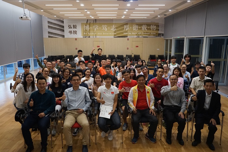 本次分享会在弘毅书院一楼多功能厅举办,由汕头大学书院总院拓展中心的陈益纯老师主持。为了把握住与世界冠军近距离接触的机会,弘毅书院的宿生、划艇俱乐部和雪豹户外协会的成员等来自全校不同专业的学生参加了本次座谈会,汕头武警支队的两位警官也来到现场。