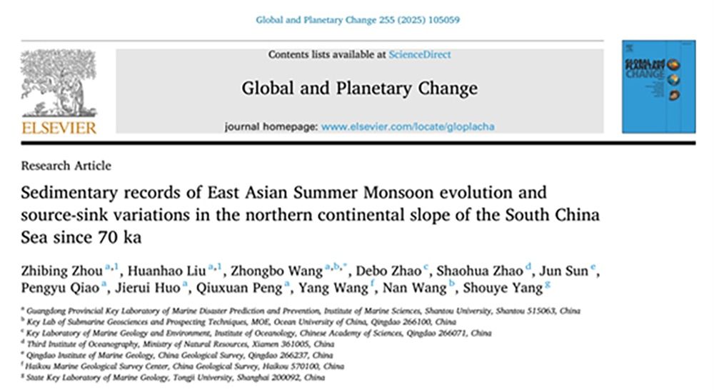周芷冰(现为中国科学院地球环境研究所25级硕士生)和刘焕好(23级硕士生)为该文的共同第一作者,王中波教授为通讯作者,汕头大学为第一单位,中国科学院海洋研究所赵德博研究员、自然资源部第三海洋研究所赵绍华研究员、青岛海洋地质研究所孙军副研究员、海口海洋地质调查中心王洋高级工程师、中国海洋大学王楠副教授和同济大学杨守业教授等是本文的共同作者。