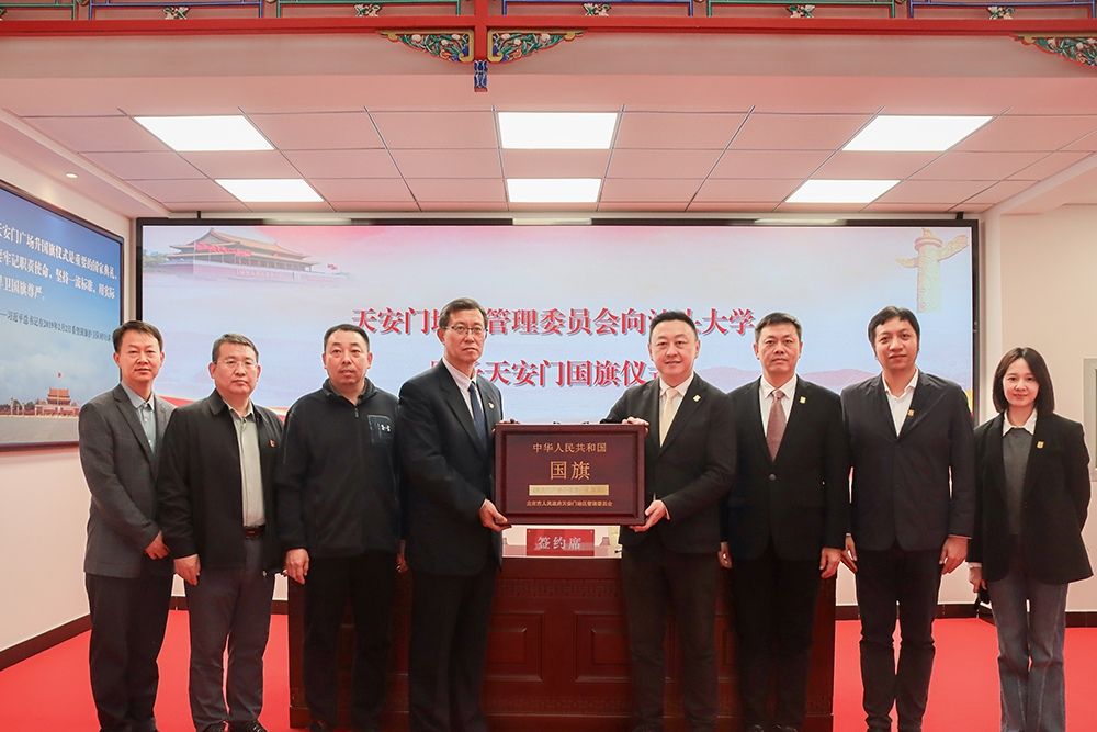 11月13日,北京市人民政府天安门地区管理委员会向汕头大学赠予天安门国旗仪式在北京天安门国旗教育馆举行。天安门地区管委会党组成员、副主任姚辉向汕头大学赠送国旗,校党委书记唐锐代表全校师生迎领国旗、签署《国旗赠予协议》。校党委常委、副校长喻洪,党政办公室、人民武装部有关同志参加赠旗仪式。