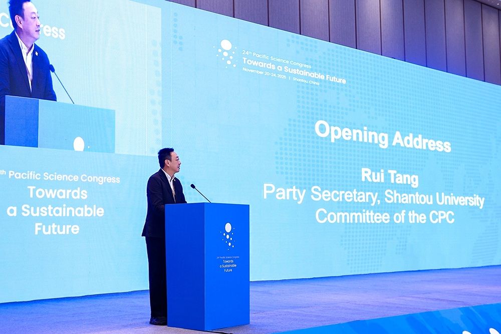 汕头大学党委书记唐锐在开幕致辞中表示,汕头大学有幸承办这一历史性盛会,既倍感荣光,更深感责任。多年来,学校聚焦可持续发展时代命题,在海洋科学、环境治理、前沿技术创新等领域深耕不辍,与全球多所高校及科研机构构建了稳固的合作网络;学校参与构建中华白海豚及其栖息地保护全链条科研与实践体系,为全球濒危海洋物种保护贡献“中国智慧”;学校正自主研发新一代脑机接口系统装备,为脑健康领域创新提供关键技术支撑。唐锐希望以大会为平台,与太平洋科学协会及各国科研机构携手同行,持续推动跨学科深度融合、跨区域务实协作,让创新智慧在南海之滨持续激荡,让合作成果惠及亚太乃至全球更多国家和人民。