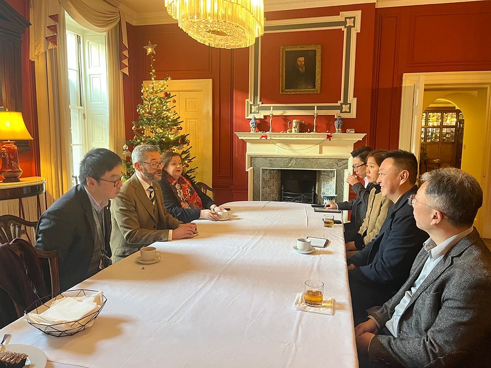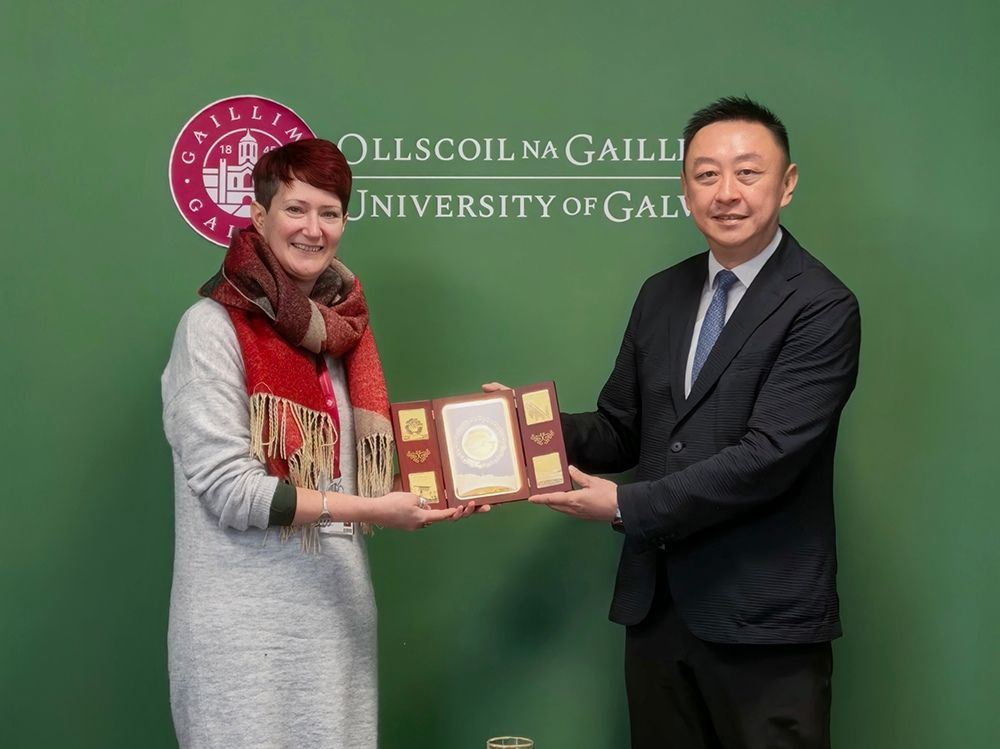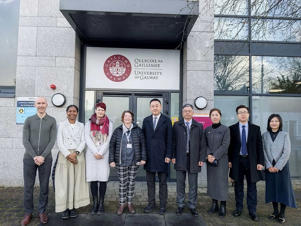 在爱尔兰,代表团重点访问了爱尔兰国立高威大学。双方举行了正式工作会议,高威大学全球合作经理Chioma Okoye-Daley女士、科学与工程学院国际事务副院长Helen Blanchard教授等代表出席了会议。会议聚焦学生双向流动、联合学位项目、合作科研平台搭建等核心议题进行务实磋商。高威大学详细介绍了其在海洋科学、数据科学、健康工程及可持续发展研究领域的全球领先优势与特色交叉学科项目。唐锐表示,高威大学的优势领域与汕头大学重点发展的学科方向高度契合,合作前景广阔。双方同意立即启动相关学院及部门层面的对接,优先推动在海洋环境、健康数据科学等领域的师生交流与科研合作。会后,代表团在高威大学同仁的陪同下参观了优美的校园与先进的教学科研设施。访问期间,唐锐一行还与高威大学商学院院长颜霁教授进行了交流。中国驻爱尔兰大使赵希源亲切会晤唐锐,赵希源大使肯定了学校对爱尔兰教育交流的积极态度,并鼓励学校为中爱人文交流做出更多贡献。