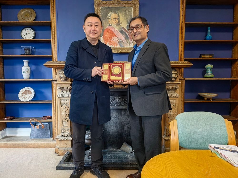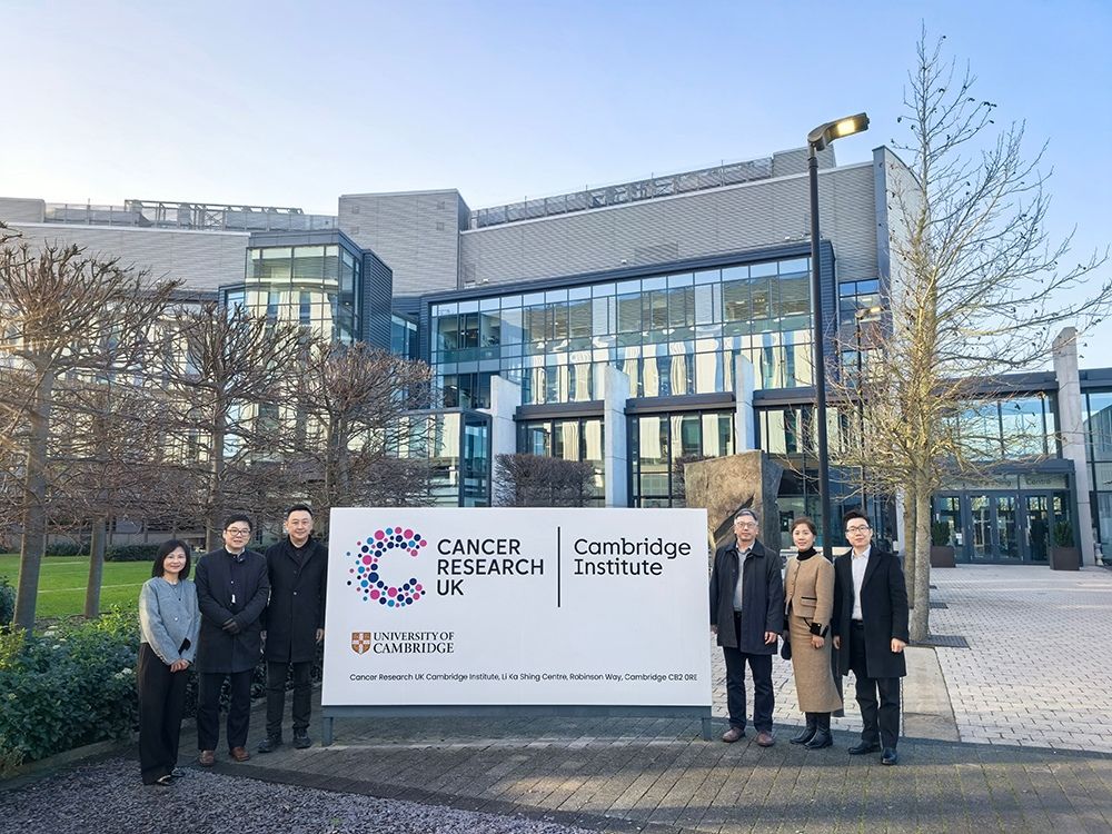 在剑桥大学,代表团访问了露西·卡文迪许学院和冈维尔与凯斯学院,并与学院院长及负责人等进行交流。在露西·卡文迪许学院,院长Girish Menon先生热情接待了代表团。唐锐介绍了汕大淑德书院在传承女子教育理念、创新书院制育人模式方面的实践,强调了培养学生领导力与社会责任感的共同追求。双方围绕女性领袖培养、师生互访、教学创新、跨文化学习项目、人才推荐等话题展开热烈讨论,发现了高度契合的教育哲学与合作空间。在访问冈维尔与凯斯学院时,院长、李嘉诚讲席教授Richard Gilbertson回顾了访问汕头大学的美好经历,对汕大医学院的发展印象深刻,并明确表达了在癌症研究、生物医学等领域开展实质性科研合作与人才联合培养的意愿。共同的“李嘉诚基金会”纽带,为两校深化合作注入了深厚的情感与信任基础。代表团还专程参访了由李嘉诚基金会捐建的剑桥大学癌症研究所,实地考察了世界顶尖的科研设施与转化平台,为学校相关学科建设与科研管理提供了宝贵借鉴。