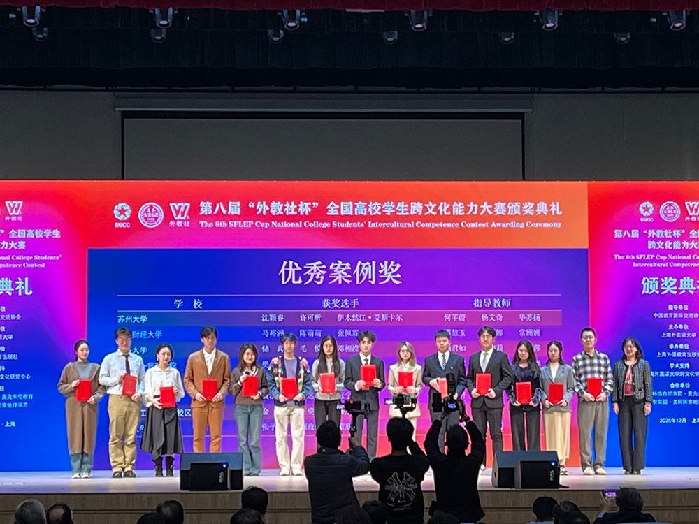 12月14日,第八届“外教社杯”全国高校学生跨文化能力大赛全国决赛暨总决赛在上海外国语大学圆满落幕。汕大学子在现场赛、短视频赛两大赛项中均实现突破,斩获多项国家级、省级奖项,充分展现了学校在跨文化交际能力培养与创新实践教学领域的扎实成效。
