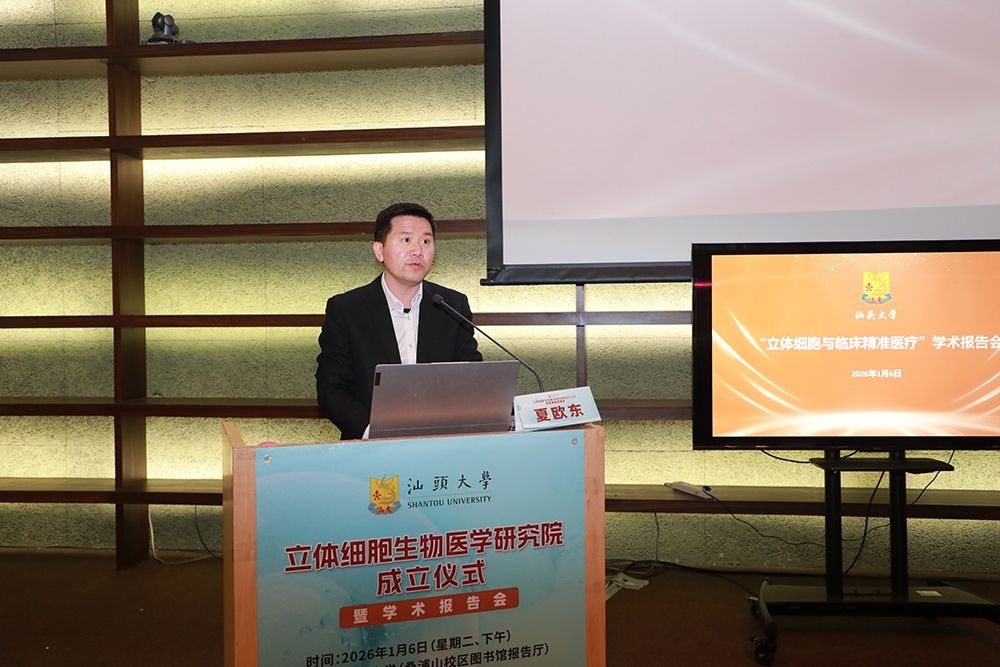 1月6日下午,汕头大学立体细胞生物医学研究院成立仪式暨学术报告会在汕头大学桑浦山校区图书馆报告厅举行。校领导、学科骨干及来自国内外高校、科研机构的专家学者齐聚一堂,共同见证这一聚焦生物医学前沿的新型科研平台正式启航。