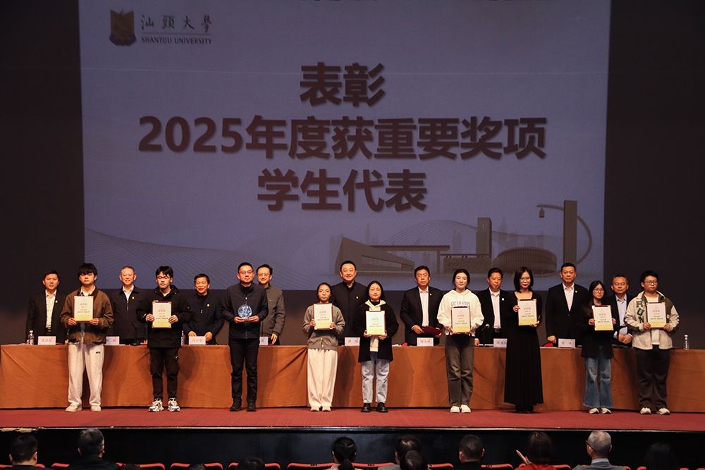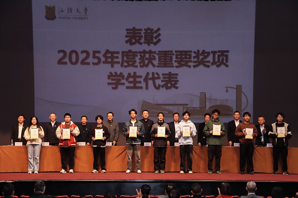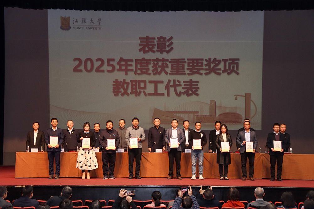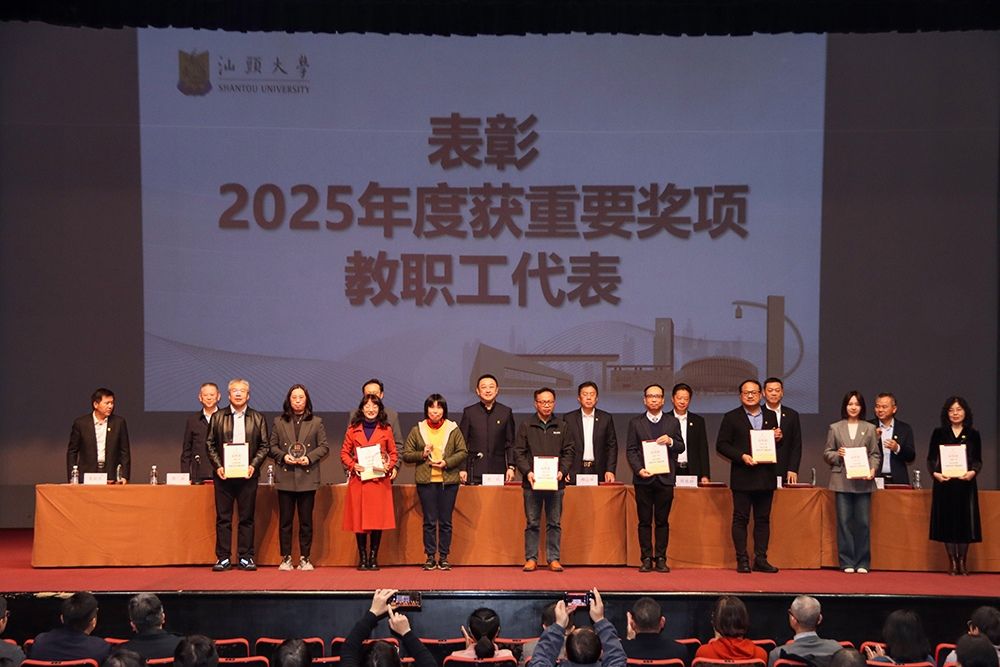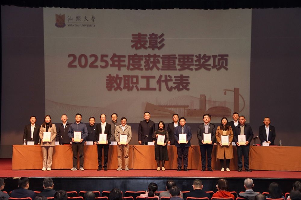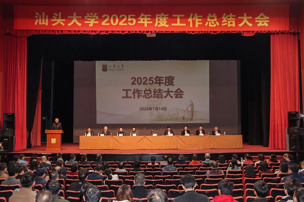 1月14日下午,汕头大学在大礼堂召开2025年度工作总结大会。校领导唐锐、郝志峰、王泉、周镇松、冯兴雷、喻洪、陈敏、胡忠,医学院党委副书记、院长夏欧东出席大会。学校教师、行政教辅人员、离退休教职工代表,各民主党派、无党派人士代表以及学生代表参加大会。大会由校党委书记唐锐主持。