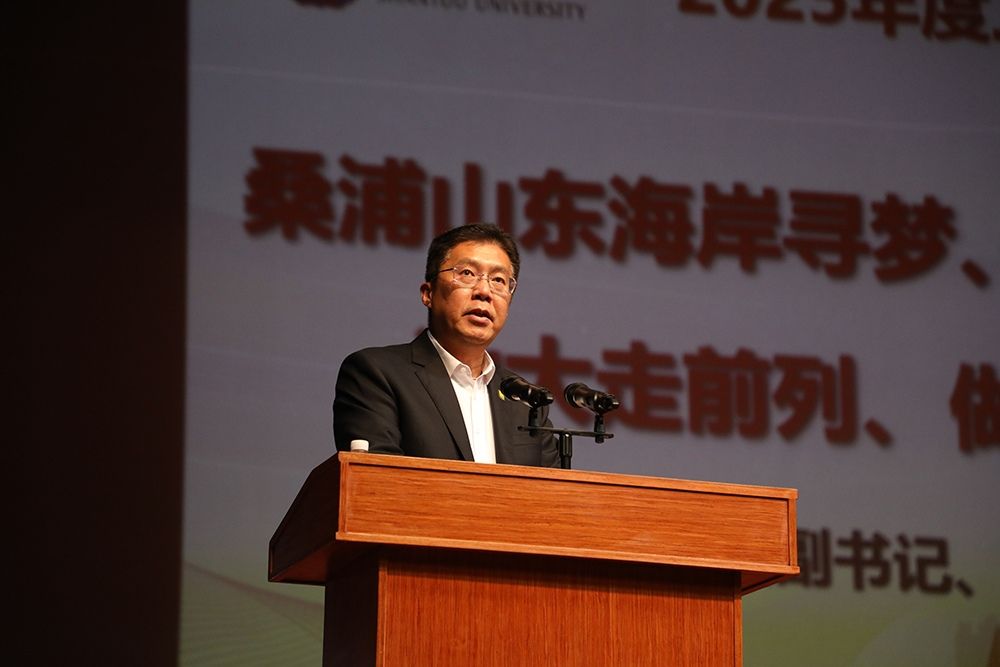 郝志峰作了题为《桑浦山东海岸寻梦,冲A冲一流路迢迢 汕大走前列、做示范、挑大梁》的学校年度工作报告。报告指出,2025年是全面收官“十四五”规划、谋篇布局“十五五”的关键之年,学校锚定高水平大学建设目标,全面落实教育强国战略及省委“1310”具体部署,以启动新一轮综合改革为强大引擎,聚焦高质量发展,在挑战中寻先机,于变革中开新局,各项事业实现了令人振奋的发展。2025年,学校党建引领愈加坚实,育人质量稳步攀升,治理效能持续提升,高水平建设攀高攻坚,服务地方贡献更加凸显。
