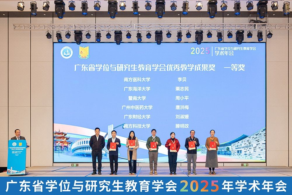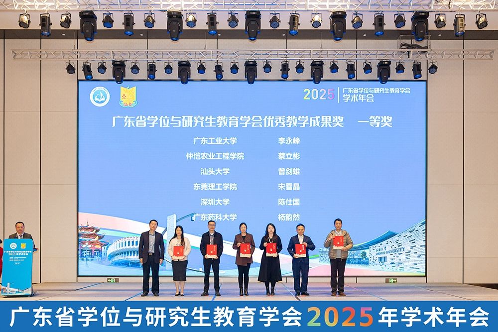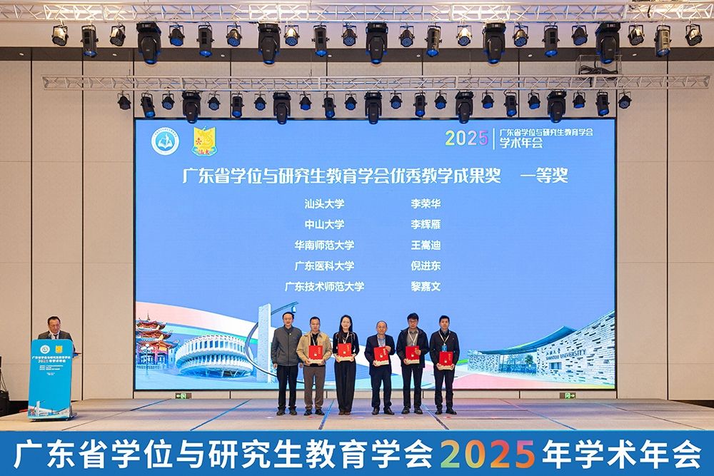 开幕式后,黄文华作学会年度工作报告。2025年,学会开展多项活动,评选出99项优秀教学成果。随后举行了2025年广东省研究生教育优秀教学成果奖颁奖仪式。汕头大学荣获一等奖2项、二等奖2项,取得该奖项设立以来最好成绩,体现了学校在研究生教育改革与创新方面的积极进展。