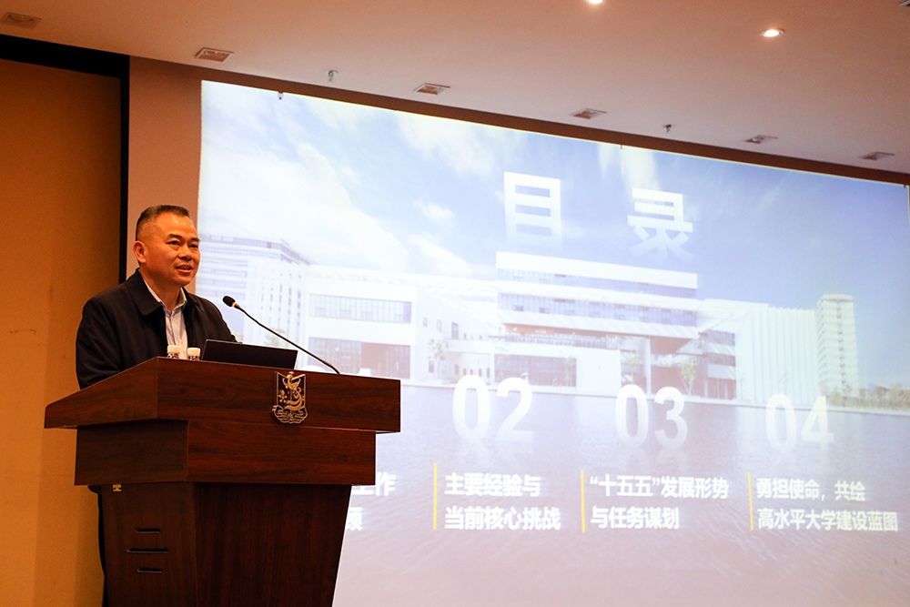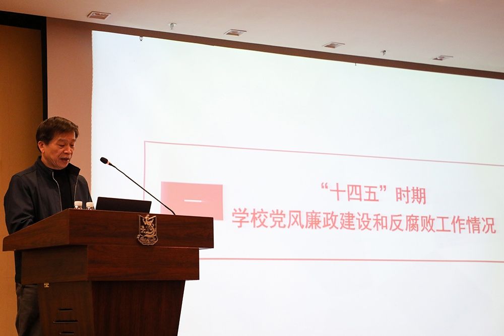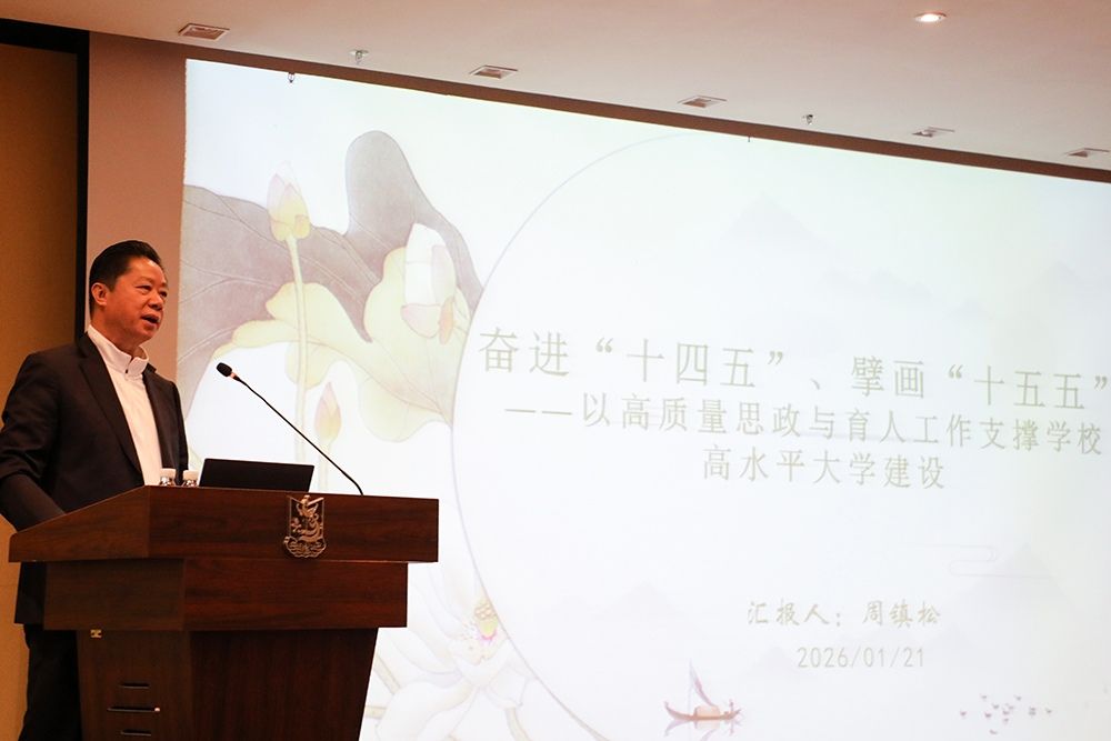 1月21日上午,校领导王泉、周镇松、冯兴雷、喻洪、陈敏、胡忠作专题报告。校领导们结合分管工作,从学科建设、人才队伍建设、研究生培养、图书馆建设、宣传统战与思想政治教育、团学工作、校园安全与稳定、工会与离退休工作、党风廉政建设、反腐败工作、战略资源保障、治理提升、内外联动、本科生培养、师资队伍建设、开放办学、战略规划、科研创新、社会服务、办学条件等多个维度,全面总结“十四五”规划建设情况,系统分析“十五五”面临的发展机遇和挑战,围绕学校综合改革目标任务,谋划“十五五”发展战略,提出“十五五”工作思路。