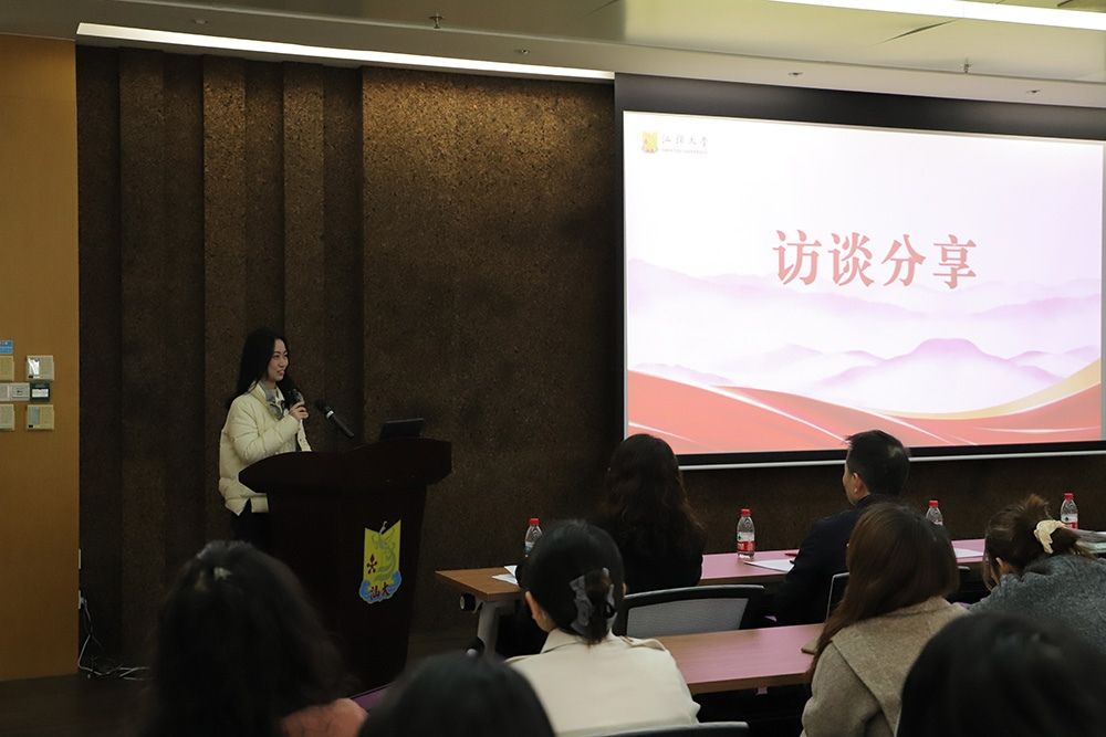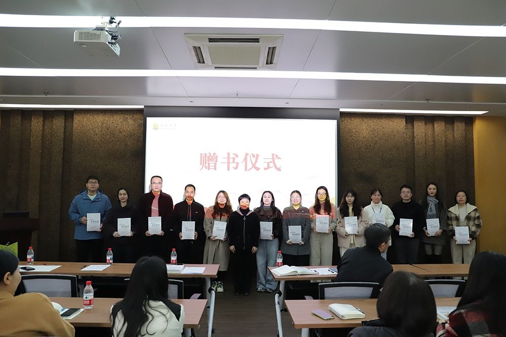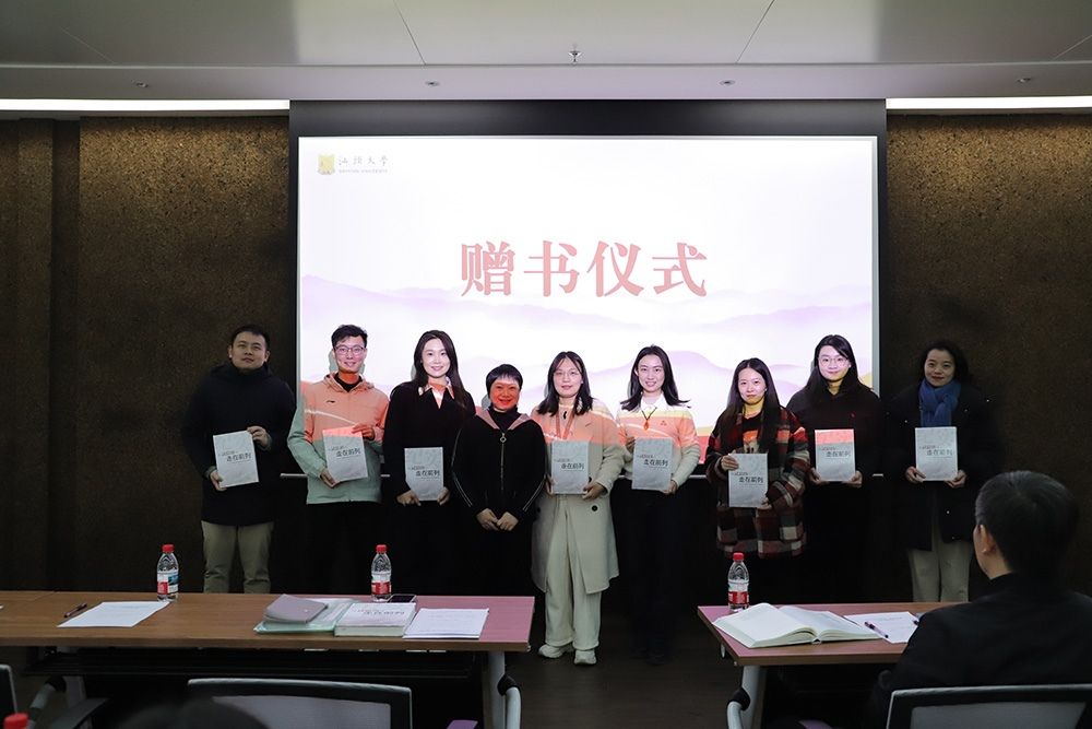 随后,“薪传领航团”成员代表依次分享心得体会。工学院辅导员余依璟、长江艺术与设计学院辅导员吴晓君、东海岸校区管理委员会行政助理布乾坤作为代表,分别讲述了参与访谈及编撰工作的经历与感悟。他们表示,通过与访谈者深度交流、精心打磨文稿,用文字定格学校改革进程的鲜活瞬间,为书籍注入了生动细节,彰显了对校史传承的赤诚之心与责任担当。现场还举行了赠书仪式。党委宣传统战部部长杜式敏为领航团成员一一赠书,并对大家的倾心付出表示衷心感谢。