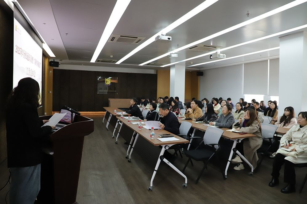 最后,杜式敏传达了学校2026年发展战略研讨会的会议精神。她介绍,此次研讨会以“统一思想、厘清思路、凝聚合力”为目的,围绕“分析形势、凝聚共识、谋划未来”核心任务,深入探讨如何深刻认识新时代高等教育发展形势与学校历史方位、科学确立“十五五”时期学校发展总体思路与奋斗目标、扎实推进“十五五”期间各项重点任务与关键工程,聚焦学校未来五年发展的方向性、战略性问题,为编制实施好学校“十五五”规划筑牢思想根基。杜式敏强调,要把握新时代高等教育发展机遇,推动学科建设、人才培养、科学研究、社会服务、文化传承等各项事业高质量发展。