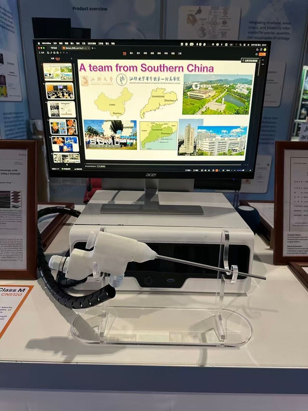 在本届发明展中,汕头大学医学院第一附属医院(以下简称附一院)骨科胡军教授团队携创新原创项目《用于骨性关节炎早期诊疗的光声多模态关节镜系统》参展,通过严谨答辩及严格评审,在激烈竞争中脱颖而出,荣获金奖(Gold Medal)。评审过程中,胡军向评委们展示了团队20余年的研究积累、临床科学问题瓶颈与解决方案、多项发明专利及科技查新报告,得到评委们的充分肯定与赞许,为后续成果转化落地与临床应用奠定了坚实基础。