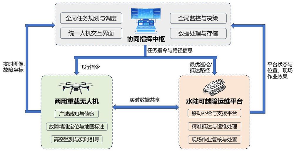 “渔光互补”是国家“双碳”战略下清洁能源与生态农业融合的创新模式,然而在实际运营中面临光伏板清洁难、水域作业风险高、设备巡检盲区多等核心痛点。针对这些行业共性难题,王双喜将带领项目团队重点研发两用重载无人机系统和水陆可越障运维平台系统两大核心装备。前者融合工业级多旋翼无人机的高空机动性与地面移动机器人的精密作业能力,实现光伏板表面高效智能清洁;后者采用水陆双态承载结构,可载人作业并具备卓越鱼塘跨越能力,从根本上解决水域作业安全风险。通过两大基础单元的合理集成,项目将构建复杂地形下光伏场站的全方位、多功能智能巡检体系,实现光伏板清洁与电站高效安全运维,为行业提供可复制、可推广的创新性解决方案。