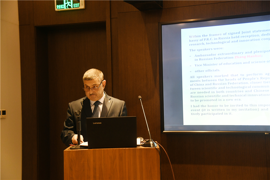 最后,Leonid Ivanov院士为汕头大学师生作了题为“Research, technological and innovation projects in different areas of engineering”的主题报告。该报告介绍了俄罗斯工程院在油管的检测与诊断、固体废物处理的循环利用技术、纳米技术和纳米材料领域的知识系统化等领域的相关研究及成果。报告引起参会师生的关注,在提问环节与Leonid Ivanov院士进行了热烈的讨论与交流。