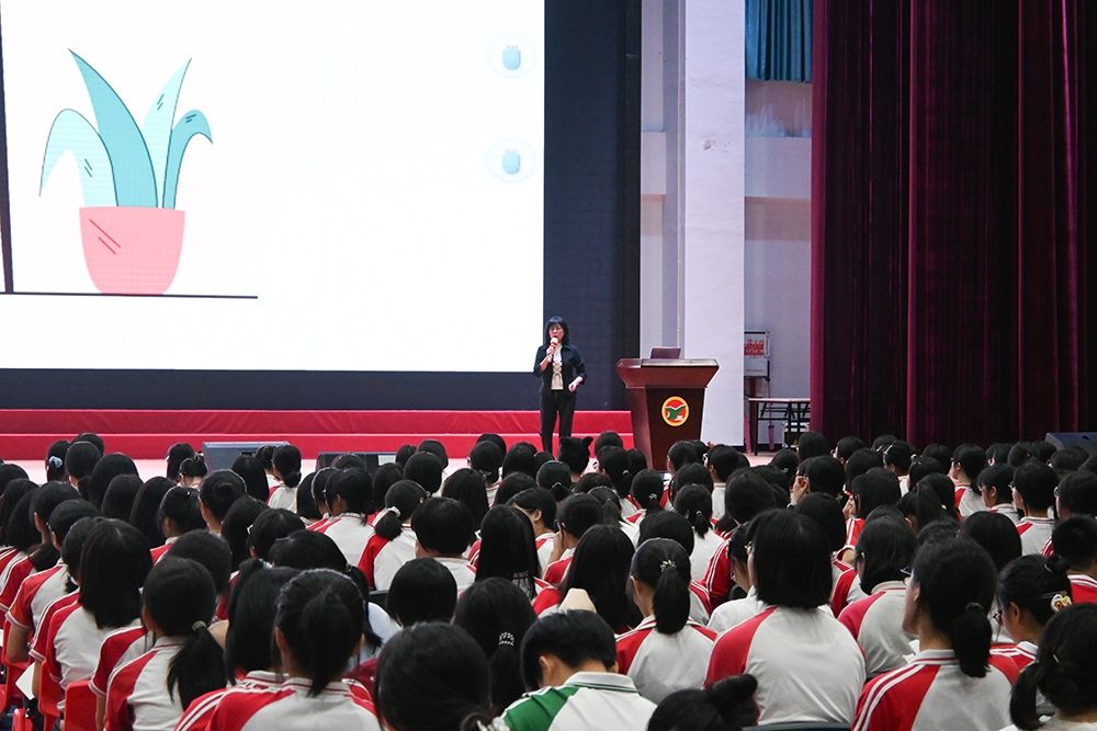章妍怡为高三学子带来了《走出拖延迷宫,勇攀高考高峰》考前心理辅导主题讲座。讲座现场,众多同学表示在备考过程中存在内部和外部多重压力的烦恼,有一定拖延心态。章妍怡指出,适度的压力在考前是正常的,可以尝试写下压力和痛苦,帮助平衡内心压力情绪;更应该学会活在当下,集中精力面对眼前的压力,卸下遥远的压力,才能让当下更有力气前进。针对拖延心态,章妍怡通过趣味问答的形式与同学们分享了番茄学习法、五感清单等许多应对小窍门,并鼓励大家:“高考是一场有意义的旅行,考试结果并不能决定一切,在这个过程中学会的方法,才是未来的人生财富。”